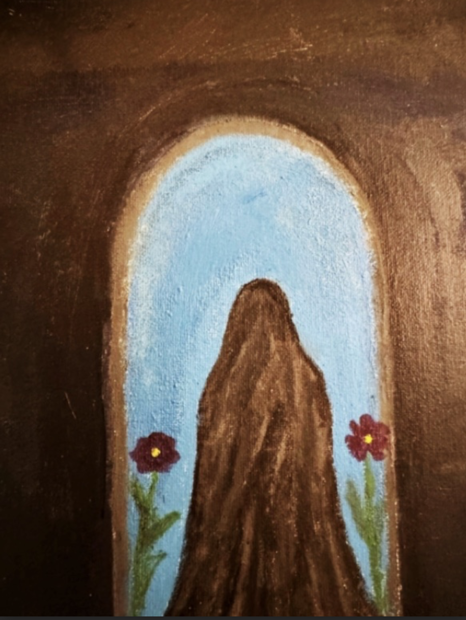 The artwork shows a scene inspired by old times in islamic countries. It captures the nightly routine of a woman praying under the dark sky. I wanted to create a mix of joy and darkness. The bright moonlight shines on their faces, showing peace and hope. This contrast reflects how, even in tough times, there is always a light of hope guiding us through the darkness. This is a woman who has gotten up in the midst of the night to complete her prayer, again showcasing peace.