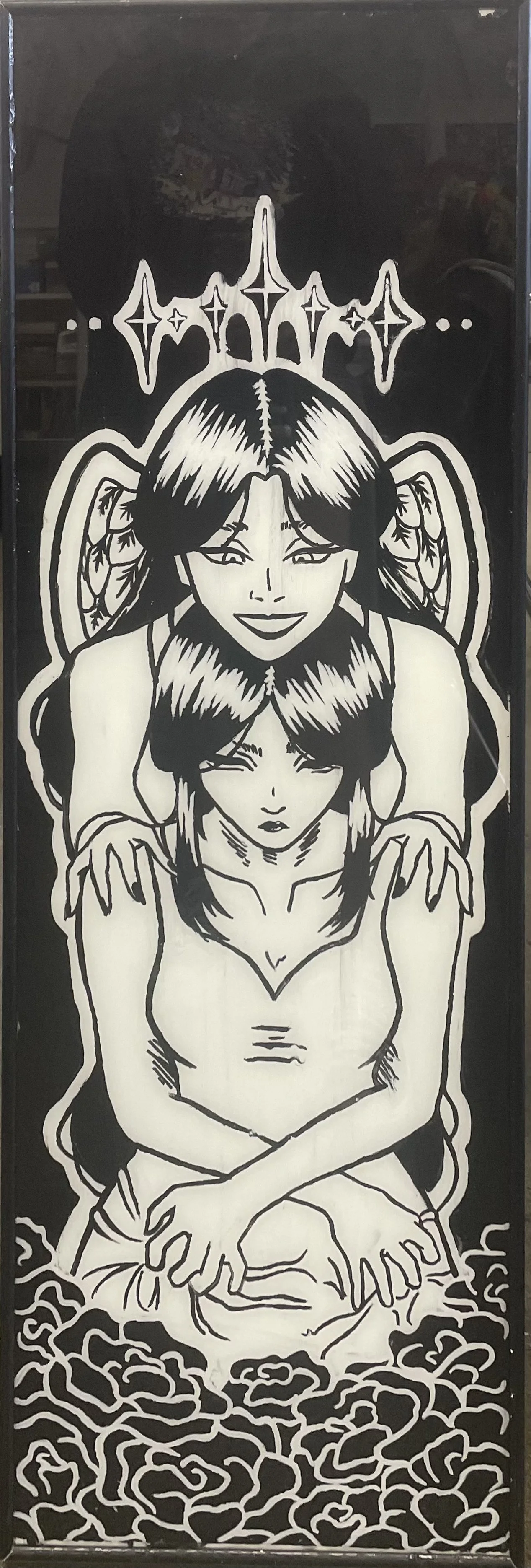 This artwork represents that subtle fear of death from deep inside. It’s like the feeling of impending doom and inevitability. To show this, the main subject is a tense girl who is being held by a dead version of herself. One of my inspirations for both the morbidness and the art style is Junji Ito and his work Tomie. -