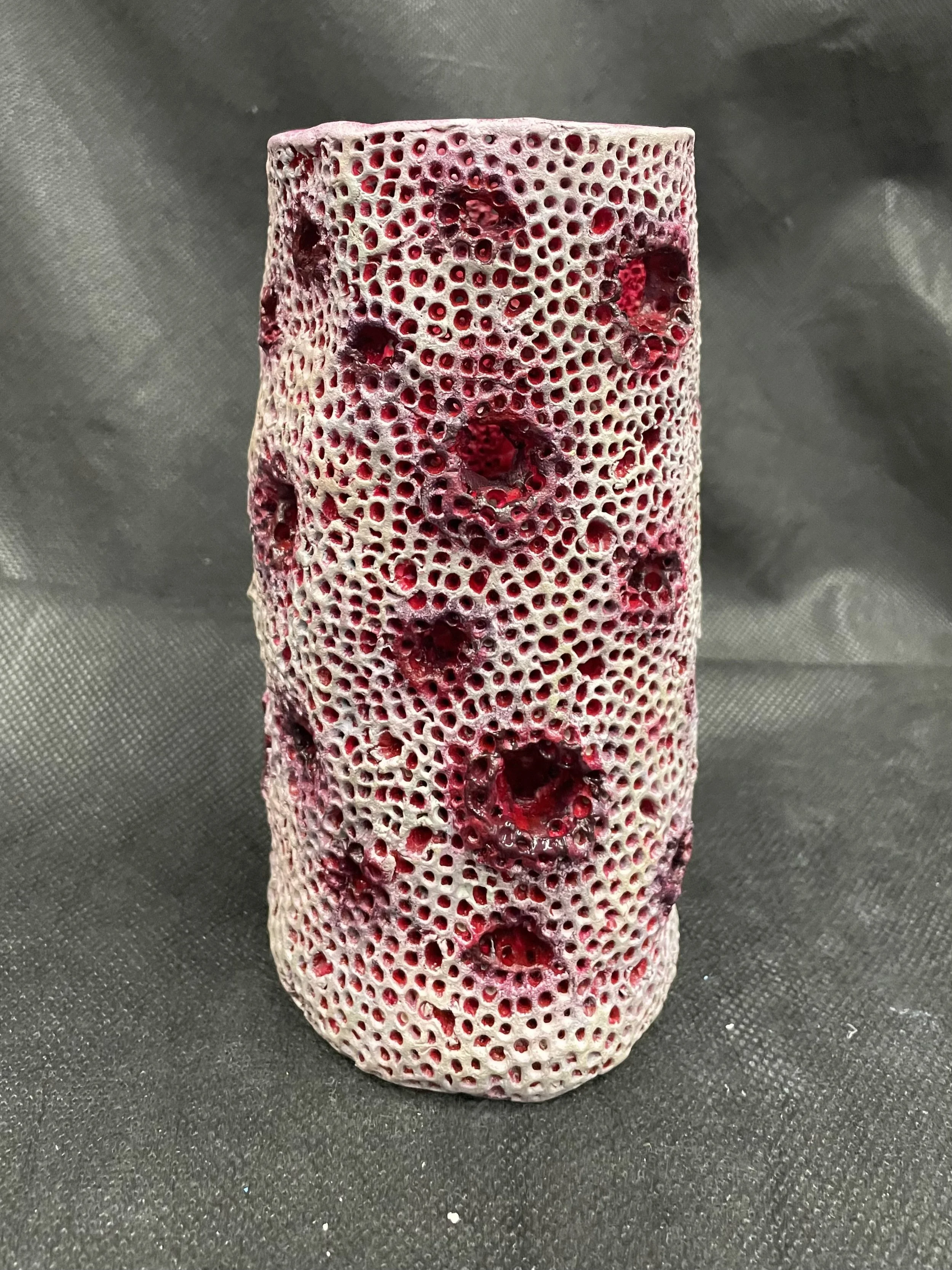 For this lantern, I wanted to make something based off trypophobia or the fear of holes especially when they are clumped together. To achieve this, I made sure my entire lantern was covered entirely in different sizes of holes. I wanted to paint it in a way that was unsettling, so I made it look like decaying skin with blood oozing out. To me, it looks like the skin of a zombie, and this idea adds to the horror effect of this lantern. I also made sure to add dimension to the blood by shading it.