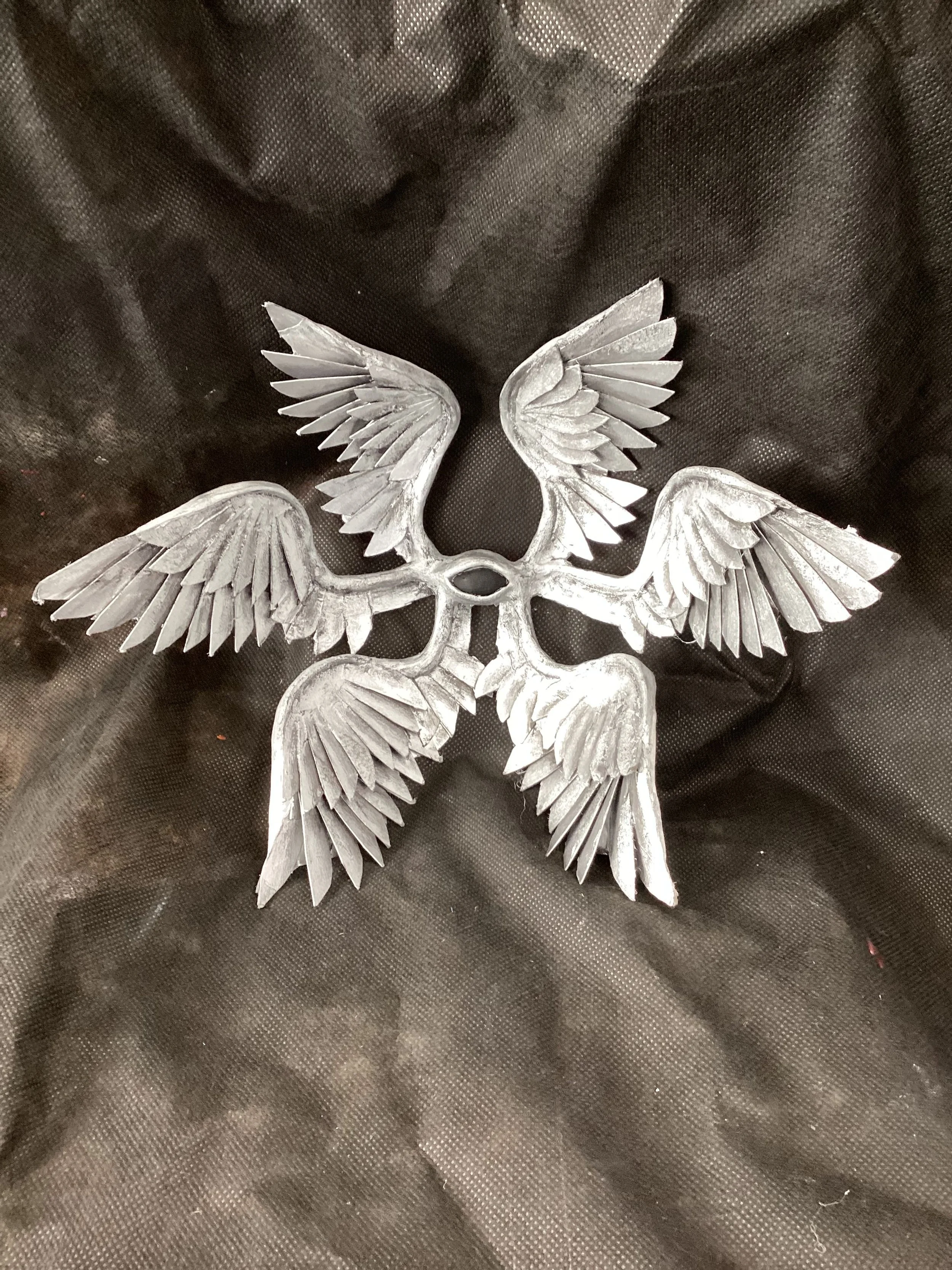 Mixed Media; spray paint, acrylic paint on wire, tape, cardboard air-dry clay