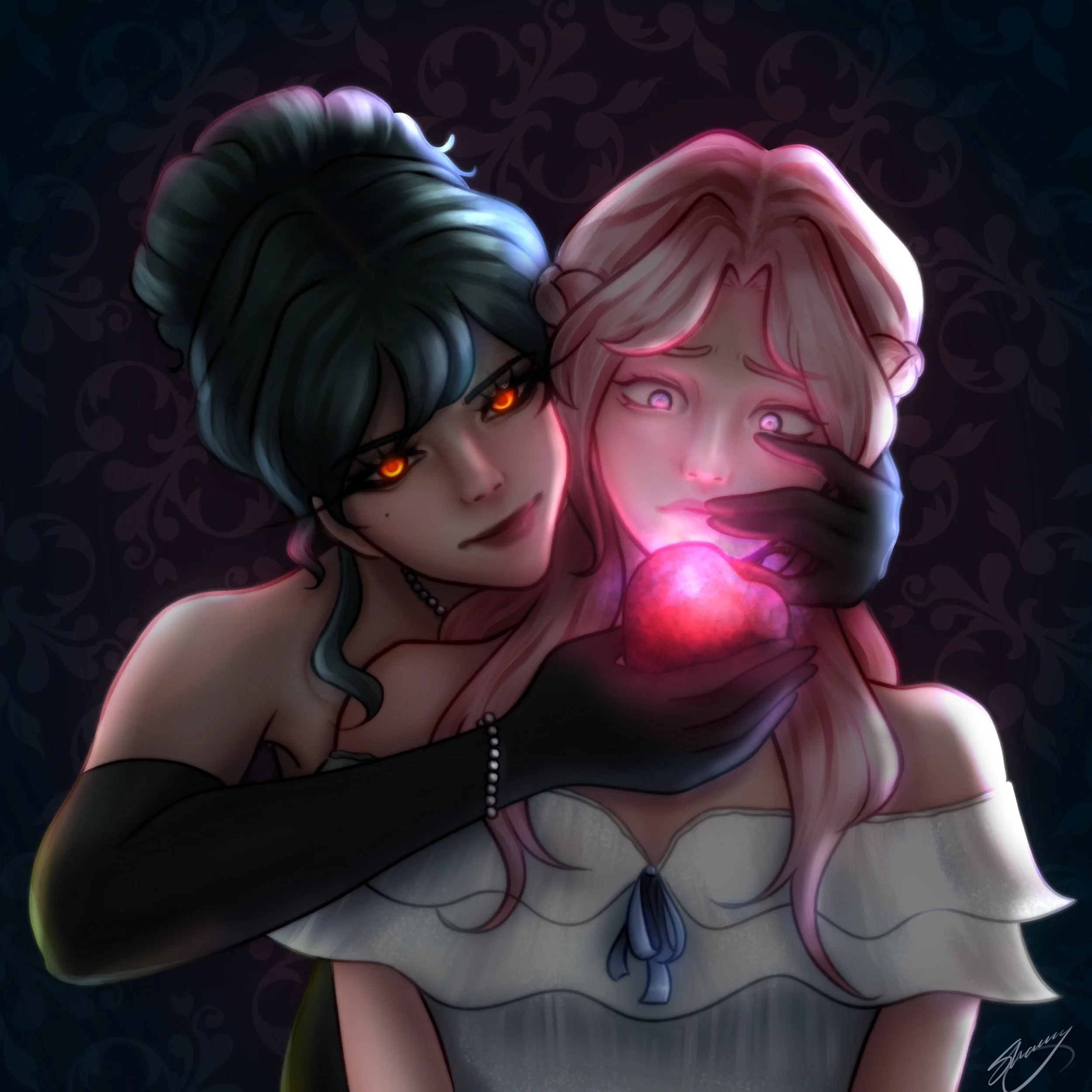 This artwork is meant to depict the fear of poison in both a metaphorical and physical sense. The apple is a manifestation of literal poison which alludes to the story of Snow White while the figure’s poses are meant to symbolize a toxic relationship.