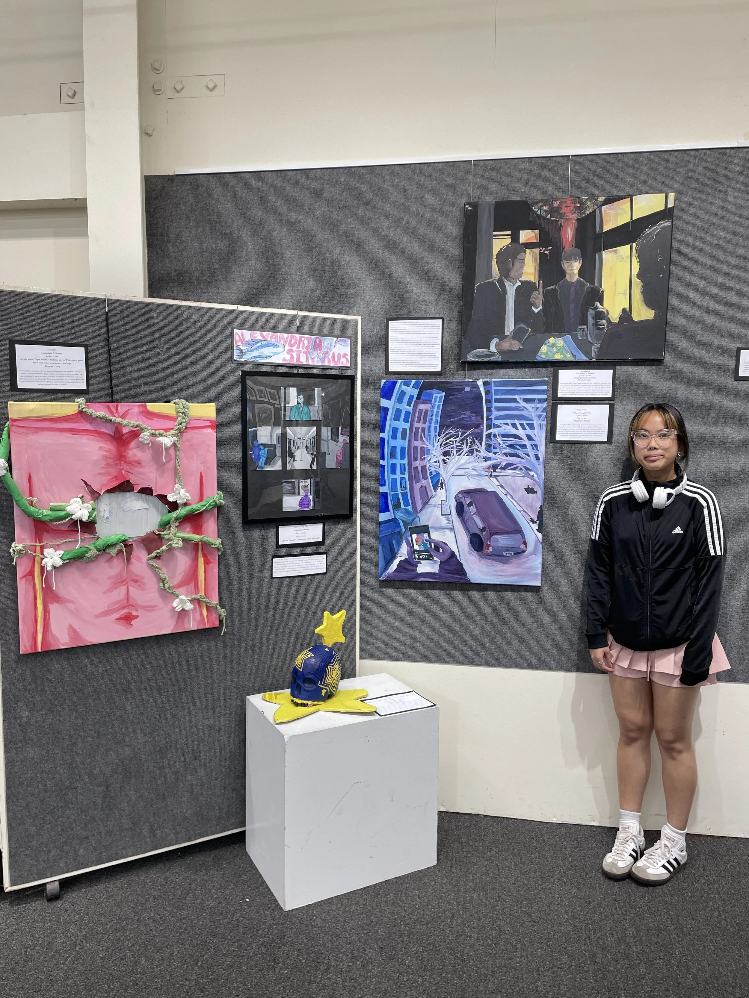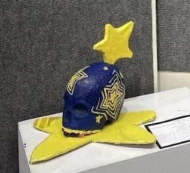 ‘Growth’ follows the theme of “How humans change over time, presented through the 4 seasons.” Using mixed media (paper mache, acrylic paint, construction paper, tape, wire, crocheting of yarn, and more), this piece is supposed to represent how humans after death or some pain, beautiful things can sprout after. The 3D aspect of this piece plays with the audience's emotions/feelings regarding the message and entrances the audience through the piece as a whole.
