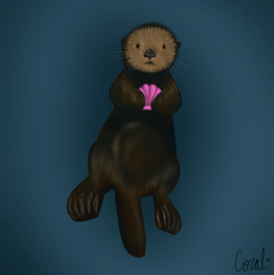 The artwork “Plastic Shells” is about the amount of plastic that is present in the ocean and that is consumed by wildlife. The main subject, a sea otter, is holding a piece of plastic that it thinks is food. This is making a statement on both the amount of plastic in the ocean and the sad result that occurs for animals that eat it. It is meant to call viewers to action to stop this sad event from occurring.