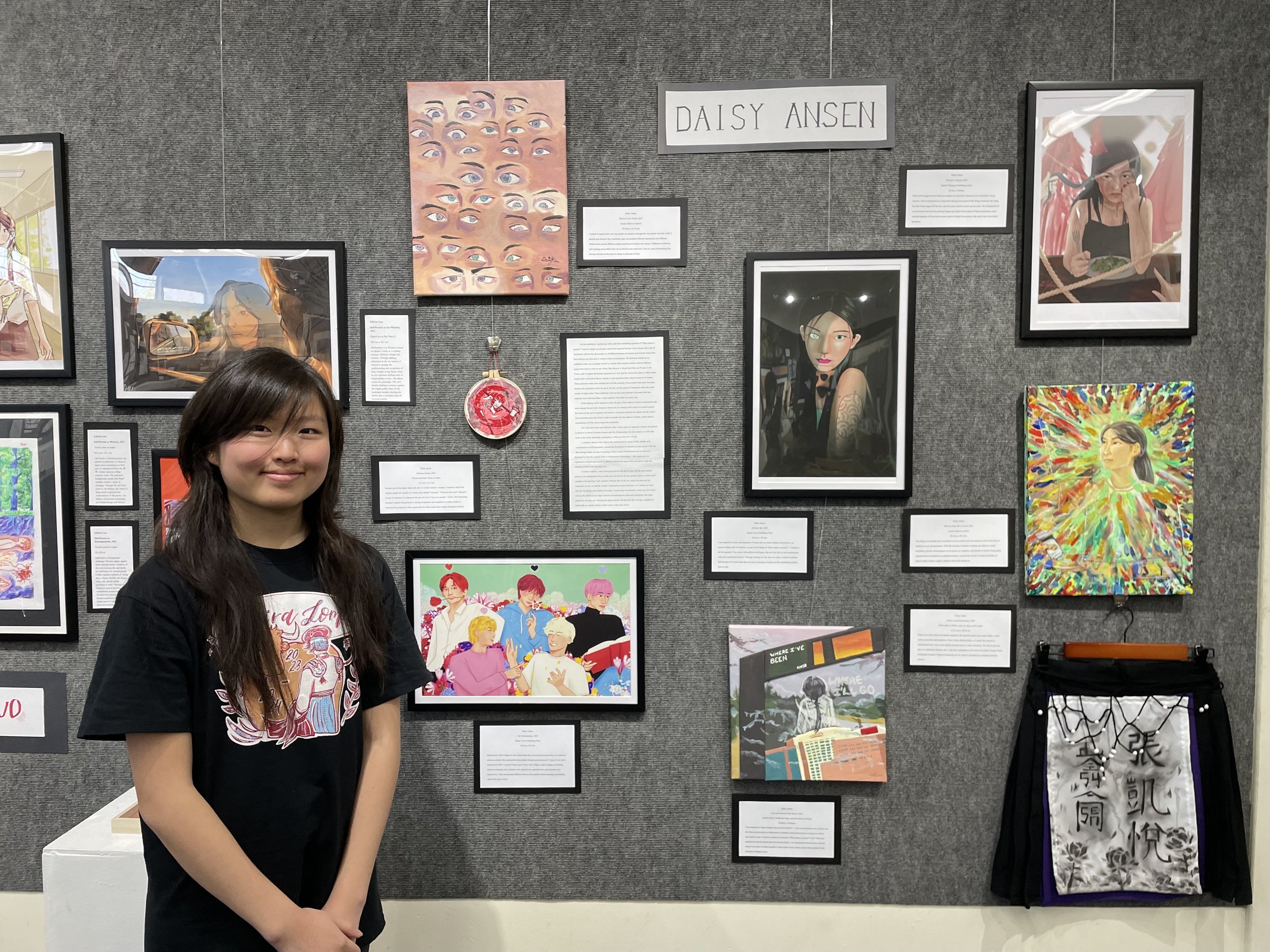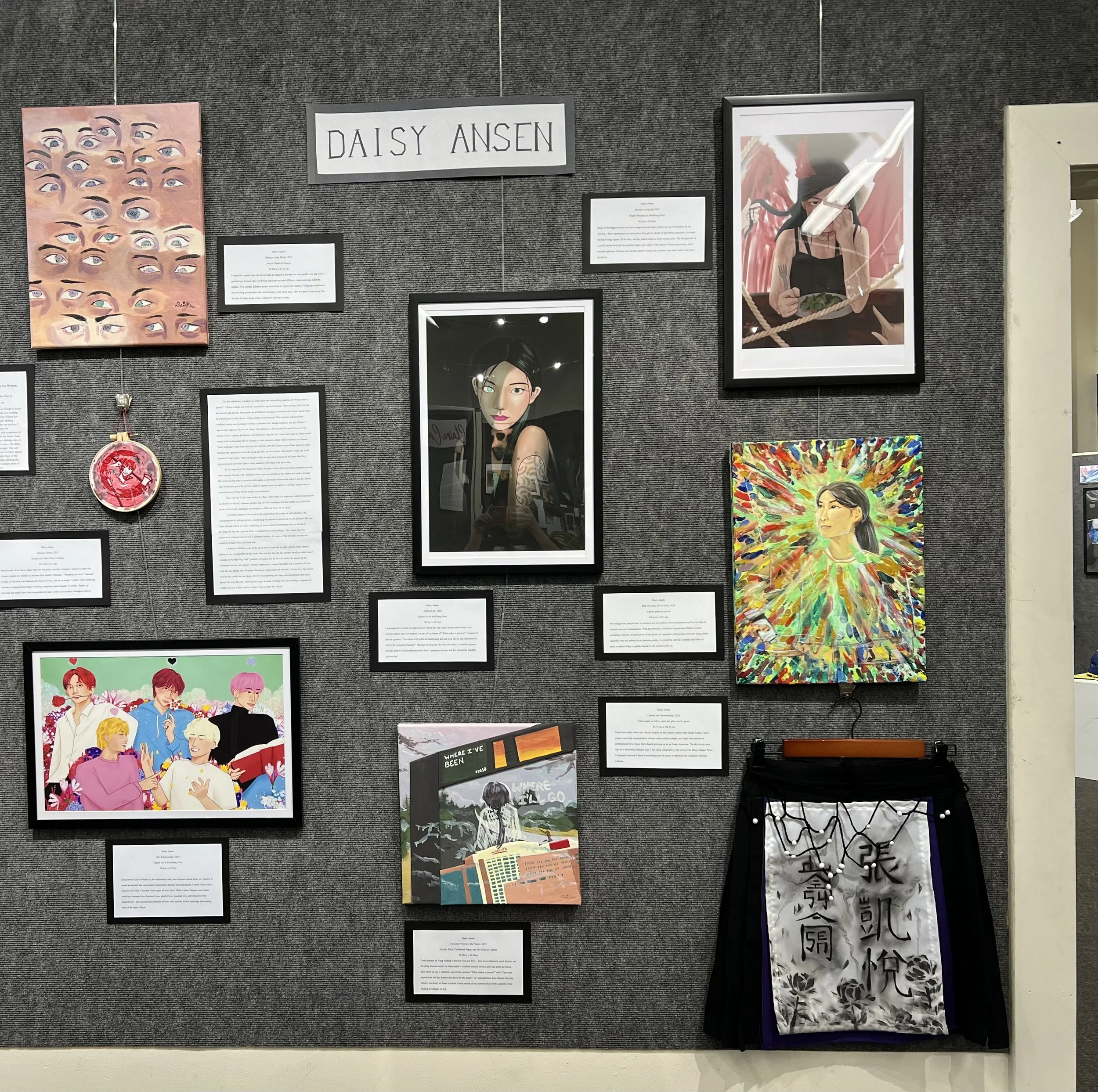 For this exhibition, I guided my work under the overarching question of “What makes a person?” I chose to shape my artworks around this question because I have always had a sort of fascination with the fact that people are all different because of external and internal factors that have built up over time due to various events or occurrences. The intention behind all my exhibited works was to prompt viewers to consider their human existence and the different aspects that make us who we are. Some, like Monster to Myself and Past and Present to the Future, seek to capture the human experience in a way that the viewer can relate to. Other works simply seek to document life as a human or raise questions about what it means to be human. These particular works were selected out of all the artworks I have created these past two years because they spanned to cover the good, the bad, and the neutral of humanity within the small number of eight works. These exhibited works are also more general in the sense that they represent more universal ideas a wider audience will relate to in some way.