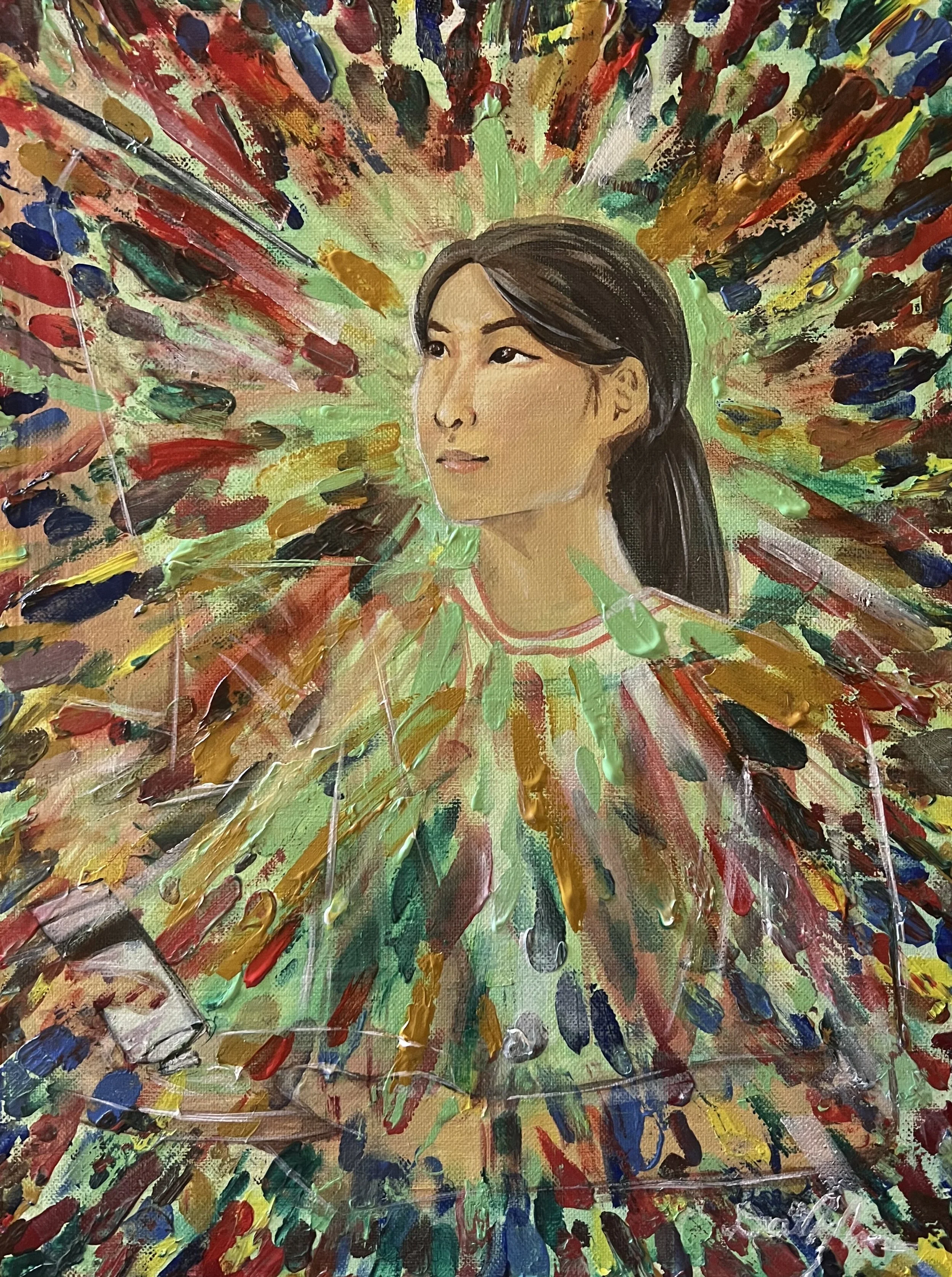 Two things most people have in common are our control over our actions as well as our lack of control over our circumstances. With this artwork, I wanted to express our efforts to create something with the circumstances we are given, so I painted a self portrait of myself using paints squeezed onto my palette by an unknown entity. I covered the canvas in streaks and blobs of paint to make it busy, a quality shared by the world around us.