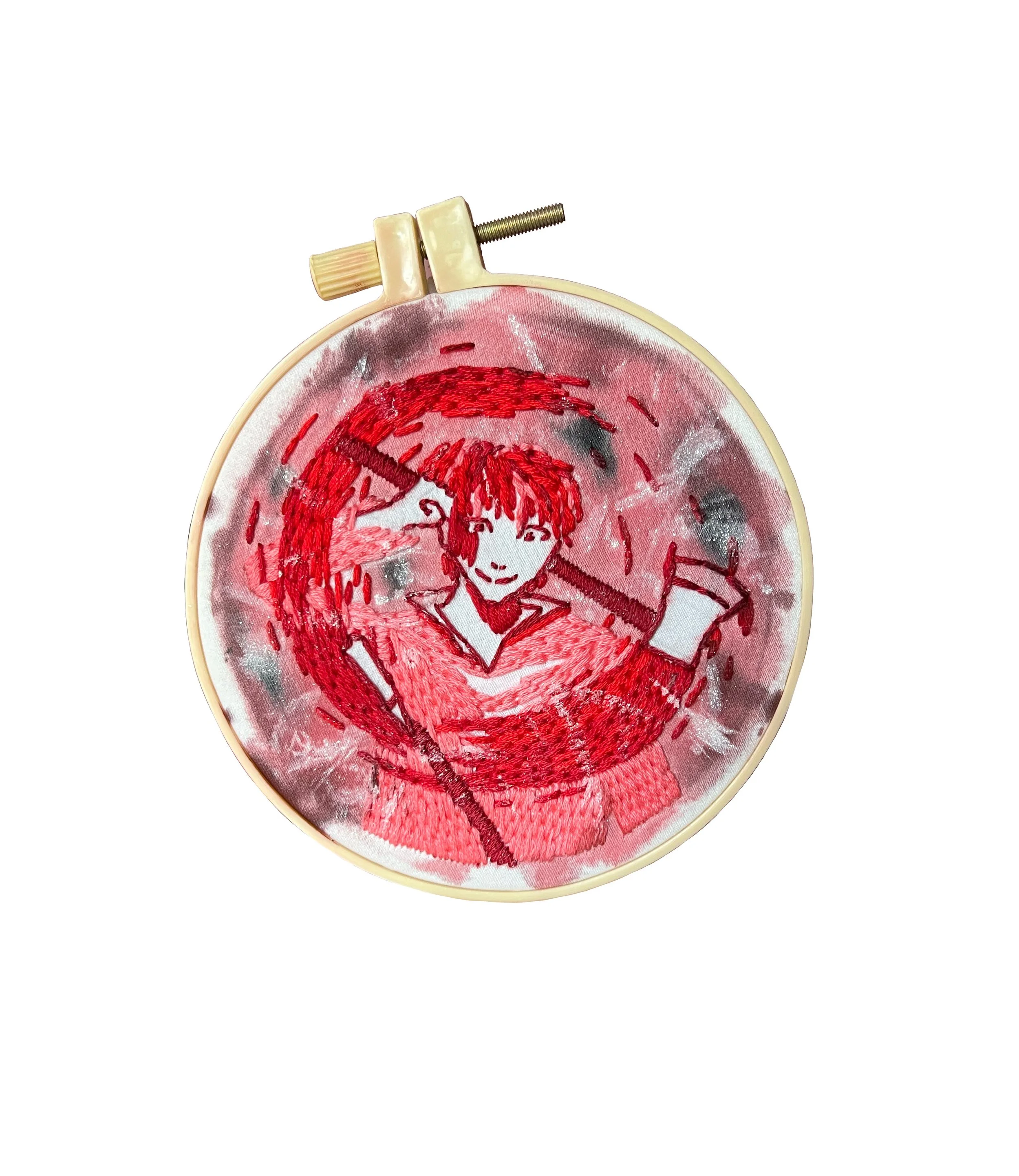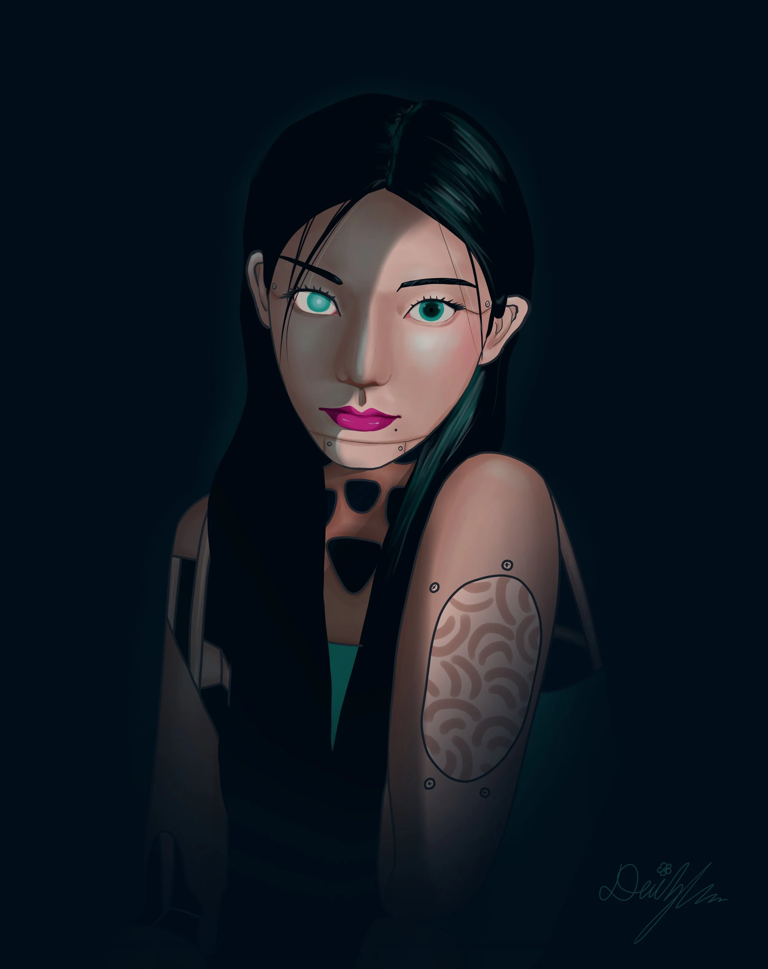 I was inspired by recent developments of robots that can mimic human movements to an accurate degree and AI Chatbots. As part of my theme of “What makes a person?,” I wanted to ask the question “Can robots with artificial intelligence that can look like us and communicate with us be considered human?” Through dividing the face into two sides, I wanted to present both the part of AI and robots that are close to passing as human and the calculating machine side we fear.