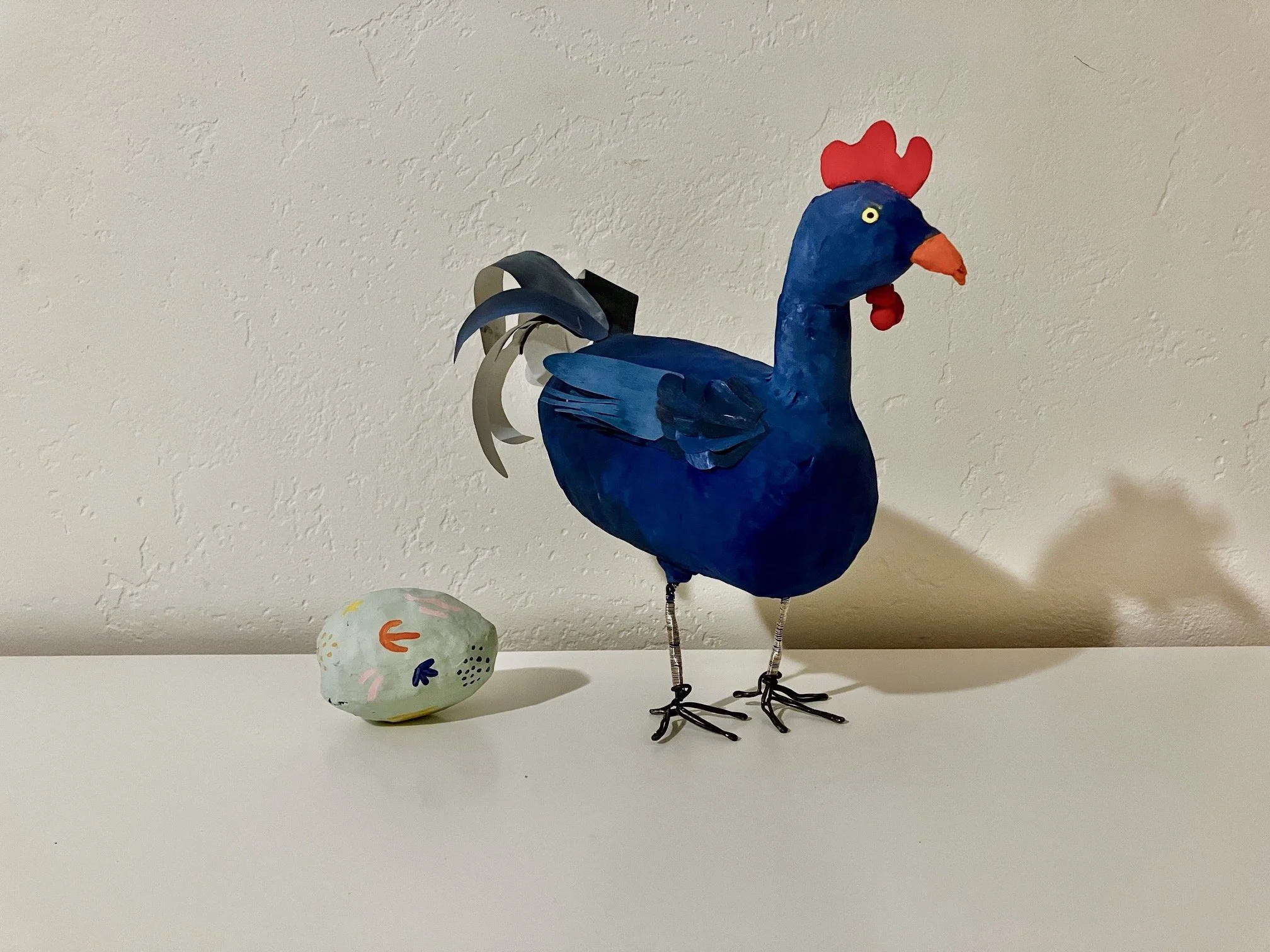 Paper mache, wire, hot glue, acrylic paint