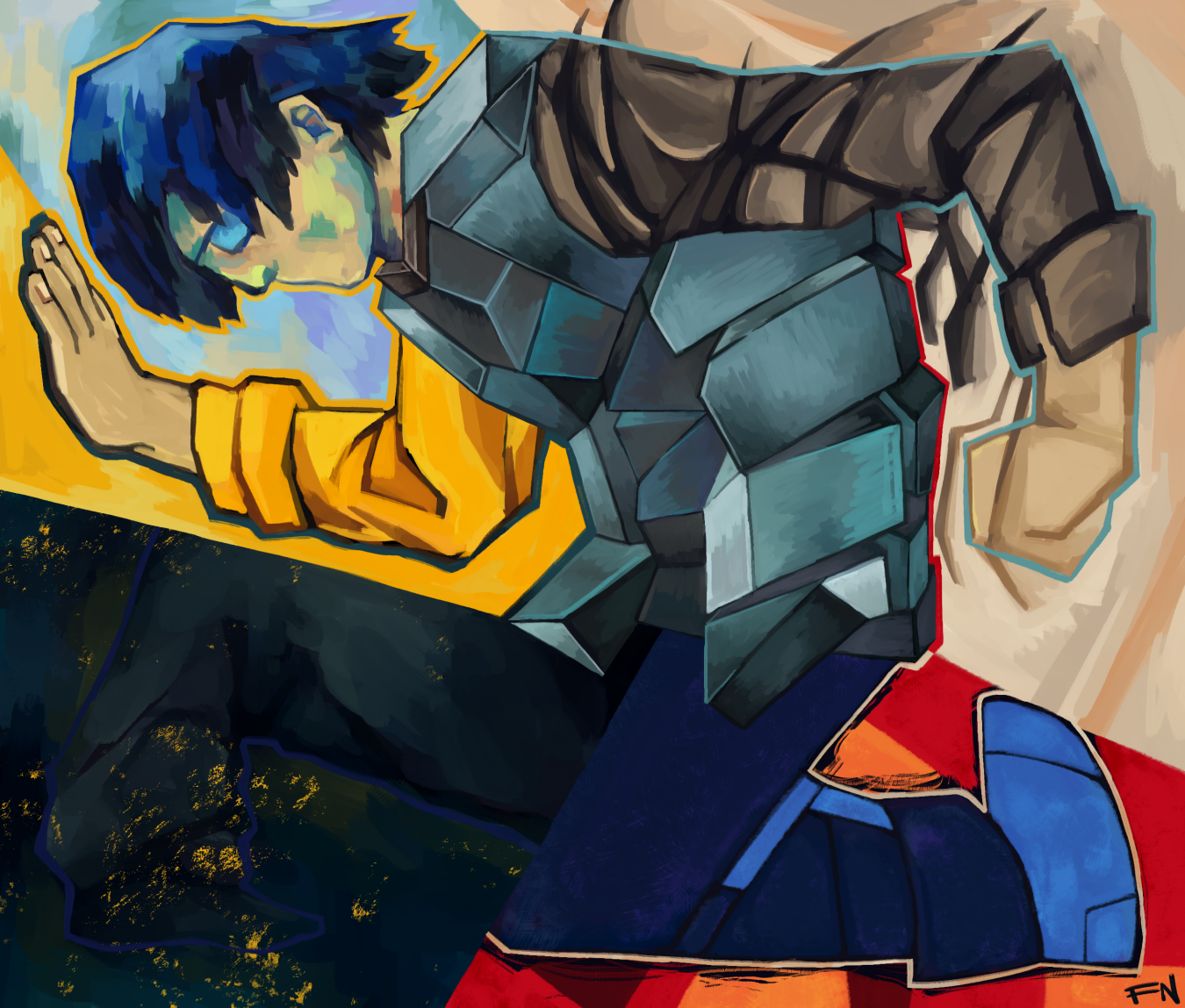 While creating my works, I aimed to capture feelings of solitude and desperation. Thus, most of my work takes heavy influence from expressionism, which is characterized by the intent to express thoughts and experiences rather than illustrating the real world. The genre is seen in the distorted human forms, suggesting how repression and loneliness can warp perception of the world. Vivid, unrealistic colors invoke thoughts and emotions instead of representing reality. Each artwork portrays a facet of an extremely personal issue. During my exhibit, I want you to feel like you’re witnessing—or going through—the end of an emotional breakdown. Everything’s o-kilter, someone’s/your shoulders are shaking, and the air around you is just starting to settle. They/you are beginning to patch the cracks in the dam where the river broke through.