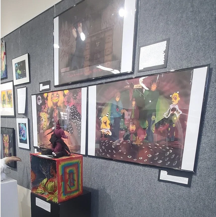 The way that my artworks are exhibited are strongly connected to the theme, they are all in order from the start of the story to the end. In each of the artworks the character starts losing his mind more and more, which tends to happen when you’ve lost everything and everyone that you love. These artworks contain signs of grief, loss and overall just insanity, this isn’t just a story but a relatable feeling that we’ve all experienced at some point of our lives .