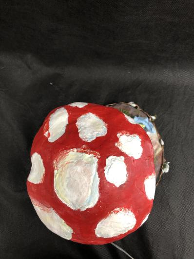 This piece was inspired by a short animation film by QinniArt, which consisted of a boy with his magic brush who painted things into reality. I incorporated my interpretation of the film and expressed it through this piece. The contrast between the girl’s imagination versus reality in this piece is shown through the unrealistic proportions, colors, and shape of the mushroom and the creature compared to the ordinary girl.