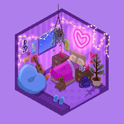 This piece was inspired by a video game called “Unpacking”. I wanted to create a pixelated, isometric room that showed different aspects of an individual's childhood, just by showing various objects and decorations. I wanted to make the audience be able to find the character-defining objects and be able to make up their childhood story, similar to the game. It touches on the topic of childhood nostalgia and the feeling of walking on memory lane.