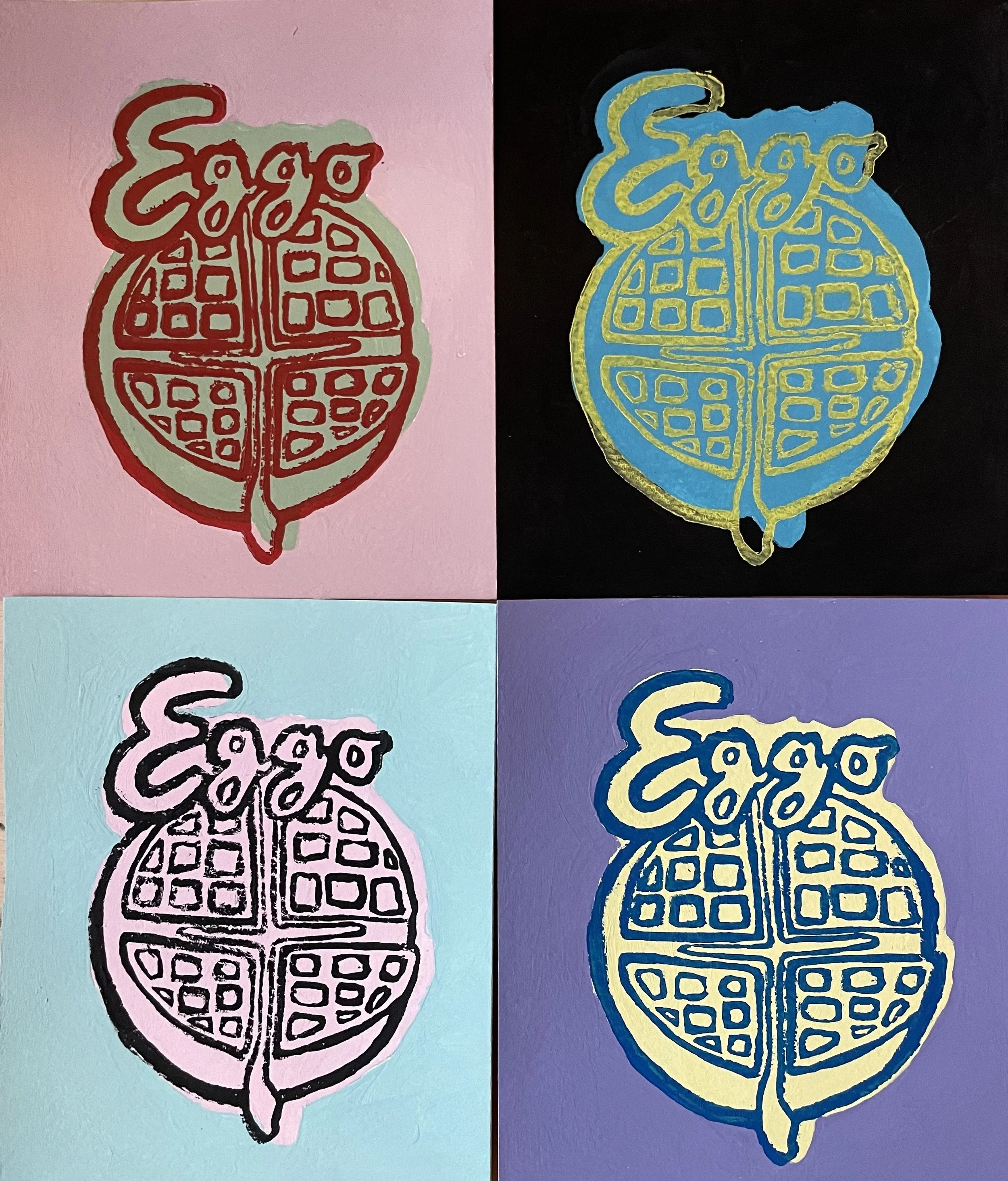 The repetition of these prints of various colors is not only inspired by Andy Warhol’s pop art style, but representative of the regular amount of times Jahja has spent eating an Eggos waffle in her childhood. The food itself, although bland, created a significant amount of joy in the artist’s youth which is symbolized through the bright colors chosen to highlight the Eggos waffles. Reflecting back on the fun memories of something so simple is what makes a childhood so significant and impactful.
