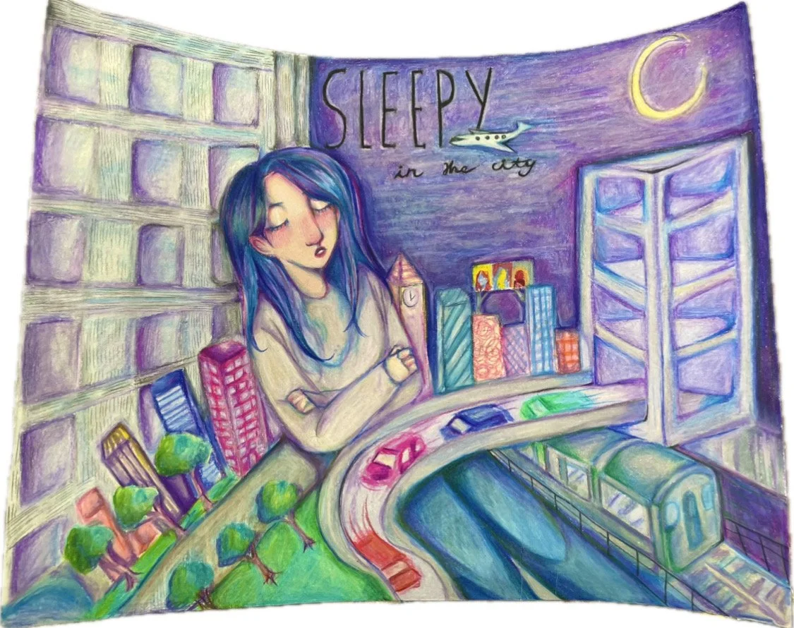 Every artwork chosen included a human in some way and form of expression whether that is in a scene or body parts. They all have an emotion attached to them with how that artwork feels being within the city. Artworks vary in how they evoke emotion like the feeling of anxiousness in Alone?, the hope in Reaching, and or the peacefulness in Sleepy in the City. All of the artworks are different in the sense that they all convey different intentions but they all have the meaning of showcasing different facets of the city life.