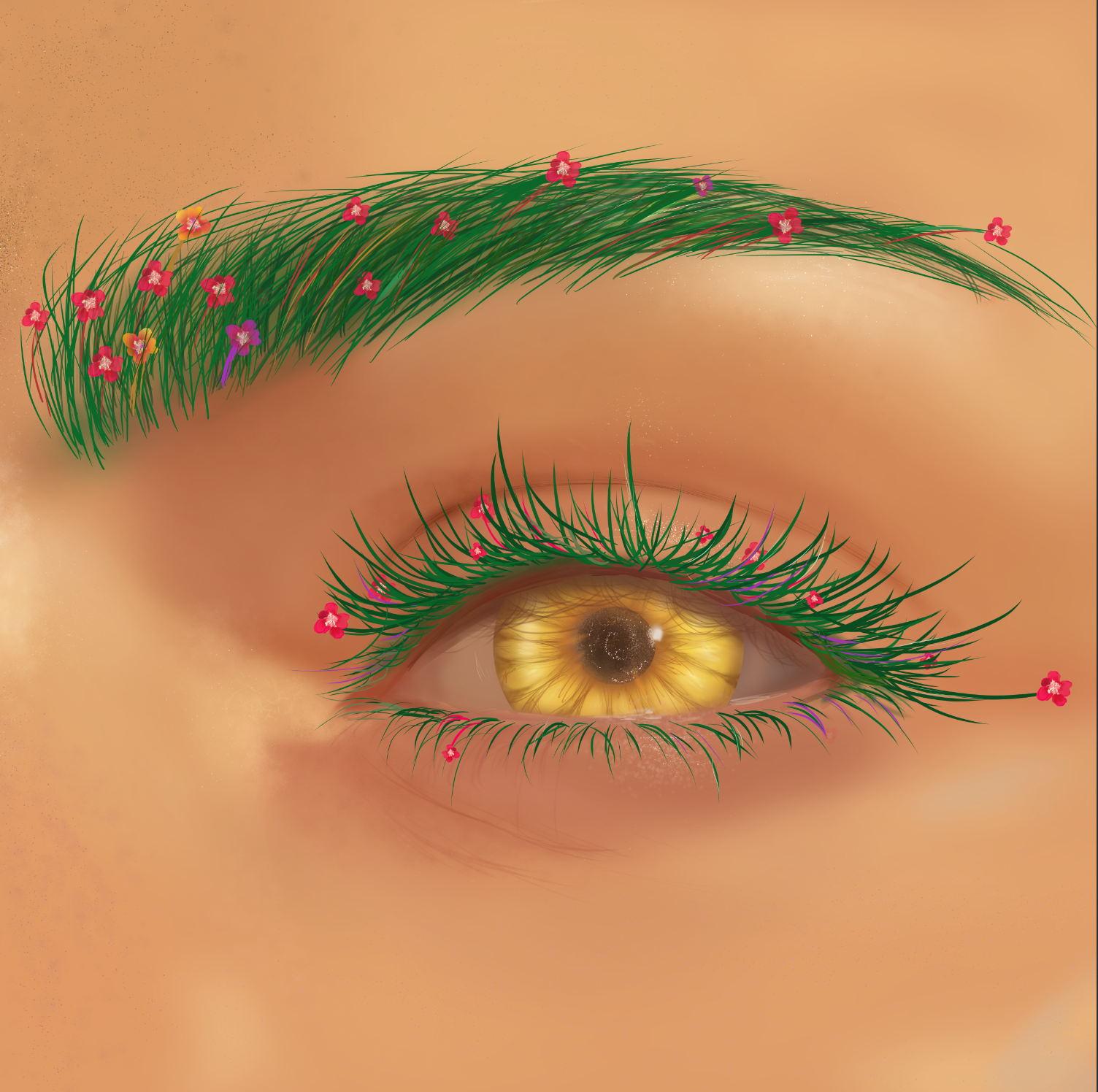 Within the theme of nature, man, and animal, this artwork explores the sub-theme of beauty. I sought to represent the phrase, “Beauty is in the eye of the beholder.” For the iris, I drew a sunflower, which often represents positivity and strength. For the eyebrows and eyelashes, I incorporated yarrows which represent everlasting love and healing. Integrating the idea of mother nature and her view of the world, I aimed to bring light to all beauty around us which we must observe and appreciate.