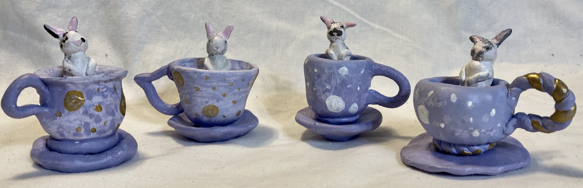 Following the theme of nature, man, and animal, this artwork explores the sub-theme of beauty. Growing up, some of my most vivid memories are around the age of 3 involving a set of teacups that I used to play with. Memories with similar characteristics of innocence and joy in recent years involve my bunnies and the joy they bring. My goal with this work is to intersect the past and present by sharing a personal representation of innocence in relation to man and animal.