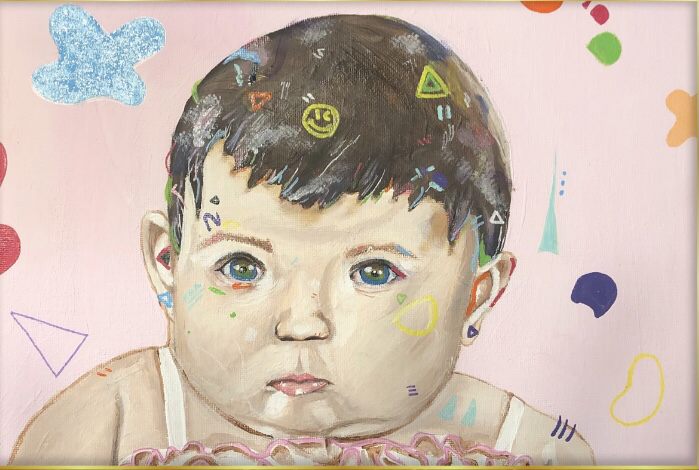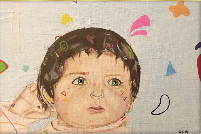 An artist, Kildren, inspired this piece. His use of light colors and fun elements are the most prominent. These components were the reason for my curiosity as it fits well with my theme of ‘childhood’. To depict my theme, I painted pictures of myself when I was a toddler. Unfortunately, my family had lost many of our precious pictures due to immigration so I wanted to convey their value with these paintings.