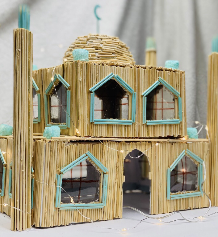 With the inspiration of ‘The White House’ by Al Farrow, I decided to make a mosque from bamboo sticks to portray the vulnerability of religion yet how it is held together by powerful glue. The addition of lights allows for all the imperfect parts to show through and to proceed to convey what religion means to me. Al Farrow’s piece was extremely impactful and left me speechless with his creativity. I hoped to create something with a similar impression which is how the idea came to be.