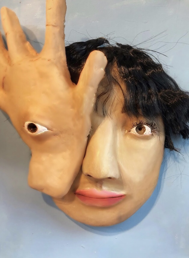 A YouTuber, shumakerart inspired this piece with her use of clay and abstract portrait artworks. I decided to create this piece while taking an abstract approach to clay sculpting. I made a face using mixed media, using mostly air-dry clay to make my sculpture. My intention for this piece is to depict vulnerability in a unique way. The eye portrays how manipulation can make someone blind to reality, and force them to walk with their eyes covered, forced to believe other's truths.