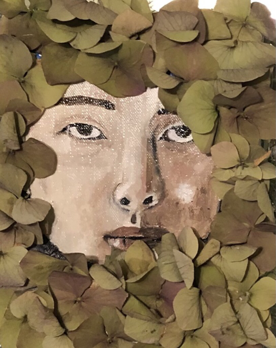 An artist, Helen Aphornsiri inspired this piece with her use of nature in art. Her artwork is so extravagant that I had to make something inspired by it. I decided to paint a man surrounded by real flowers to symbolize that one should be with nature rather than try to overpower it to have balance. I used the elements of art such as color, shape, and texture, I used the principles of design such as harmony, unity, and balance.