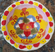 I named my pinch pot Diwali lantern “Blooming” because the carving inside of it presents a flower through different stages of blooming into something bigger. I was really inspired by the art of henna because I wanted to have something more culturally ethical for my piece. I intended to make my piece really pop with the inside carvings and I believe that they really are the focal point of my pinch pot lantern. -