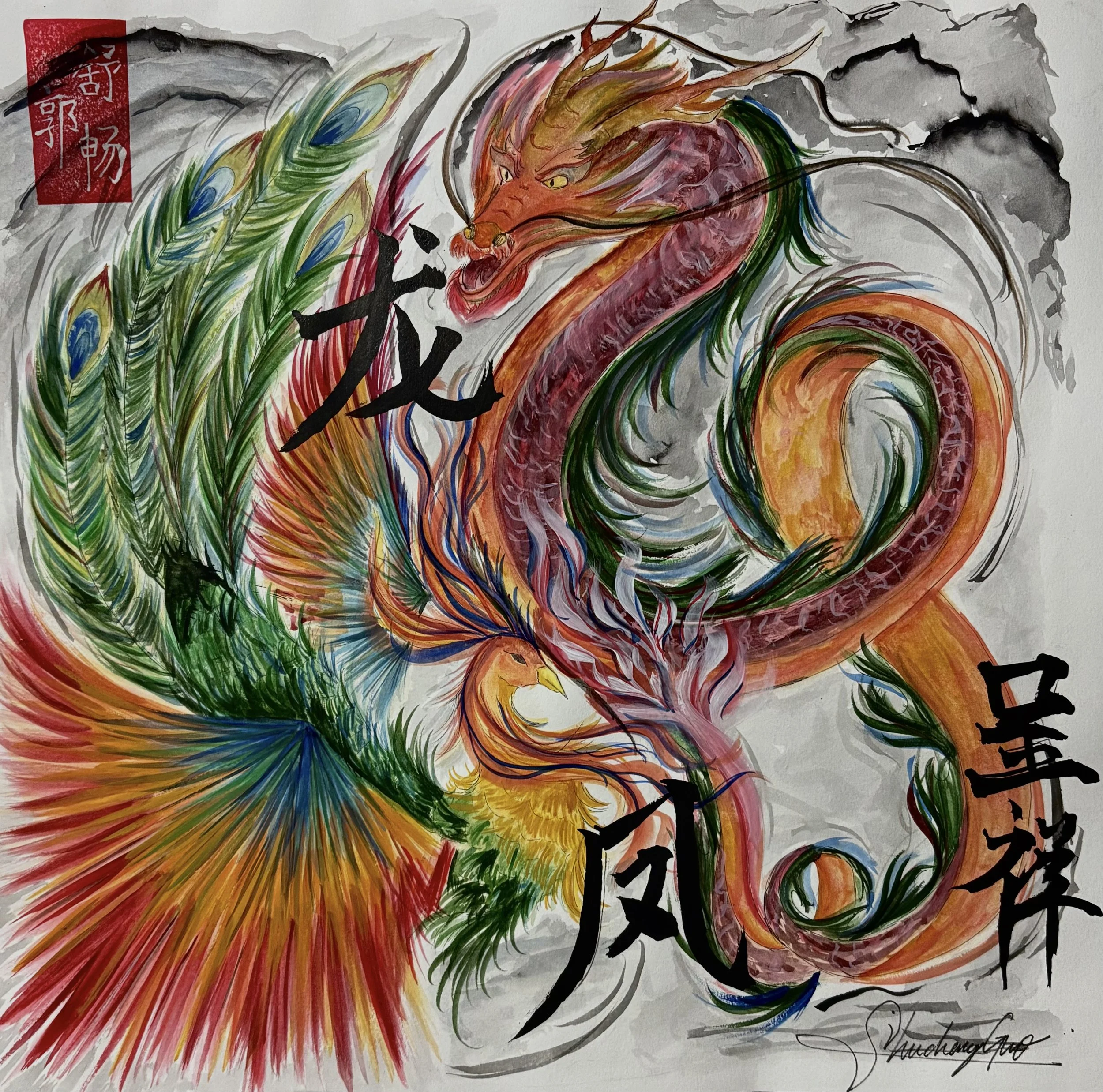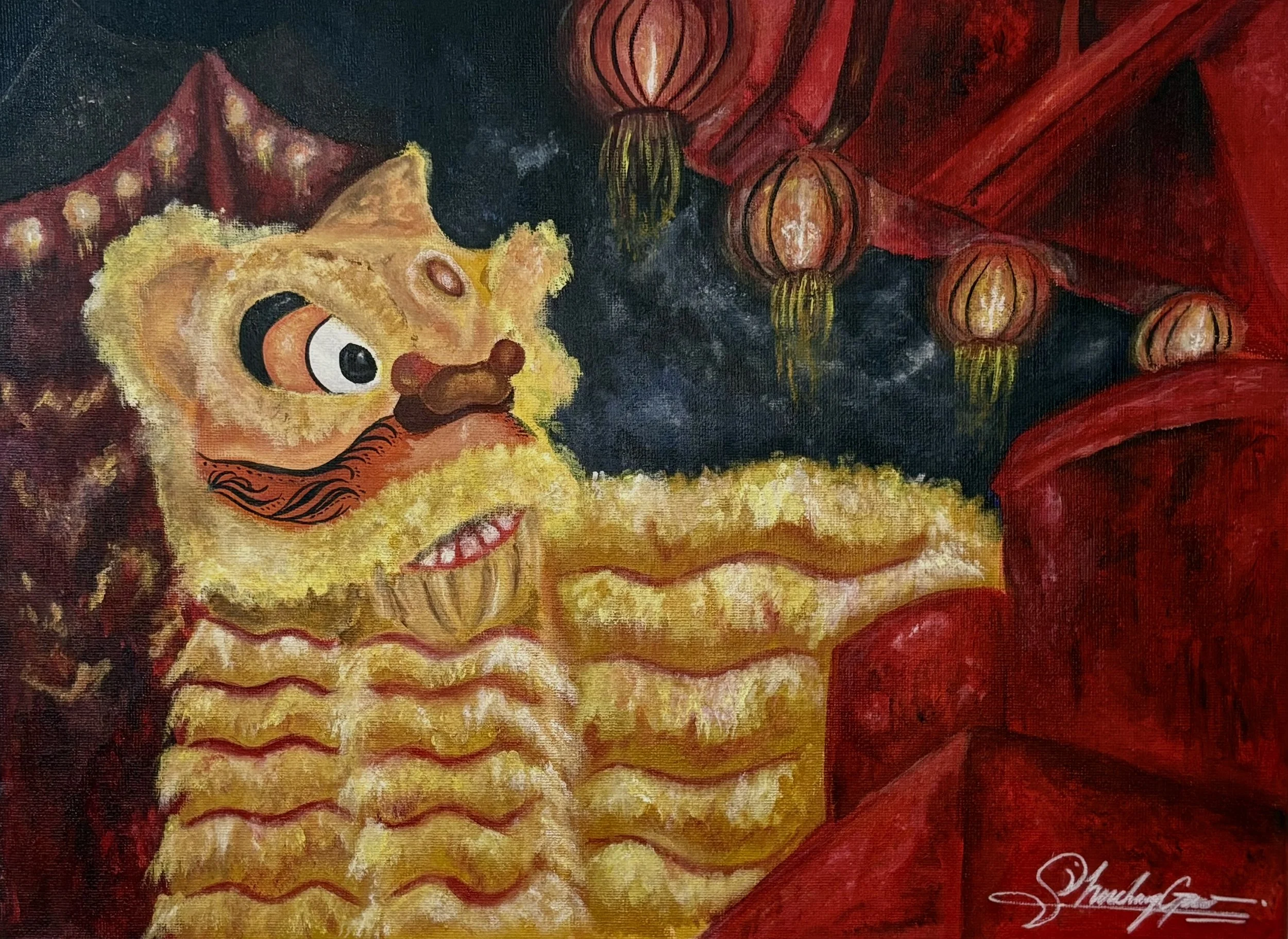 To convey my story, I had to begin by thoroughly reflecting on specific, significant anecdotes ranging from my childhood until now that allowed me to immerse myself in my culture. Examples include my travel experiences in China, celebrating festivals with my family, and the way I view cultural symbols. In doing so, I finally split my story into three categories: Traditional, Mythological, and Contemporary. This way, I intend to present a multifaceted vision of what my culture means to me, allowing the audience to visually encounter what particular aspects of Chinese culture I have had the most interest in both learning about and/or experiencing. Additionally, rather than choosing to present this exhibition through a wide variety of mediums, I chose to use the few specific mediums I have worked with the longest, giving me the ability to show how I usually approach creating art at its fullest: utilizing texture and bold colors. As a result, not only will I share my experience as a Chinese-American, but I will also demonstrate where my long-term experience in visual arts has led me, ultimately taking genuine pride in both my culture and my ability to produce art through my own approach.