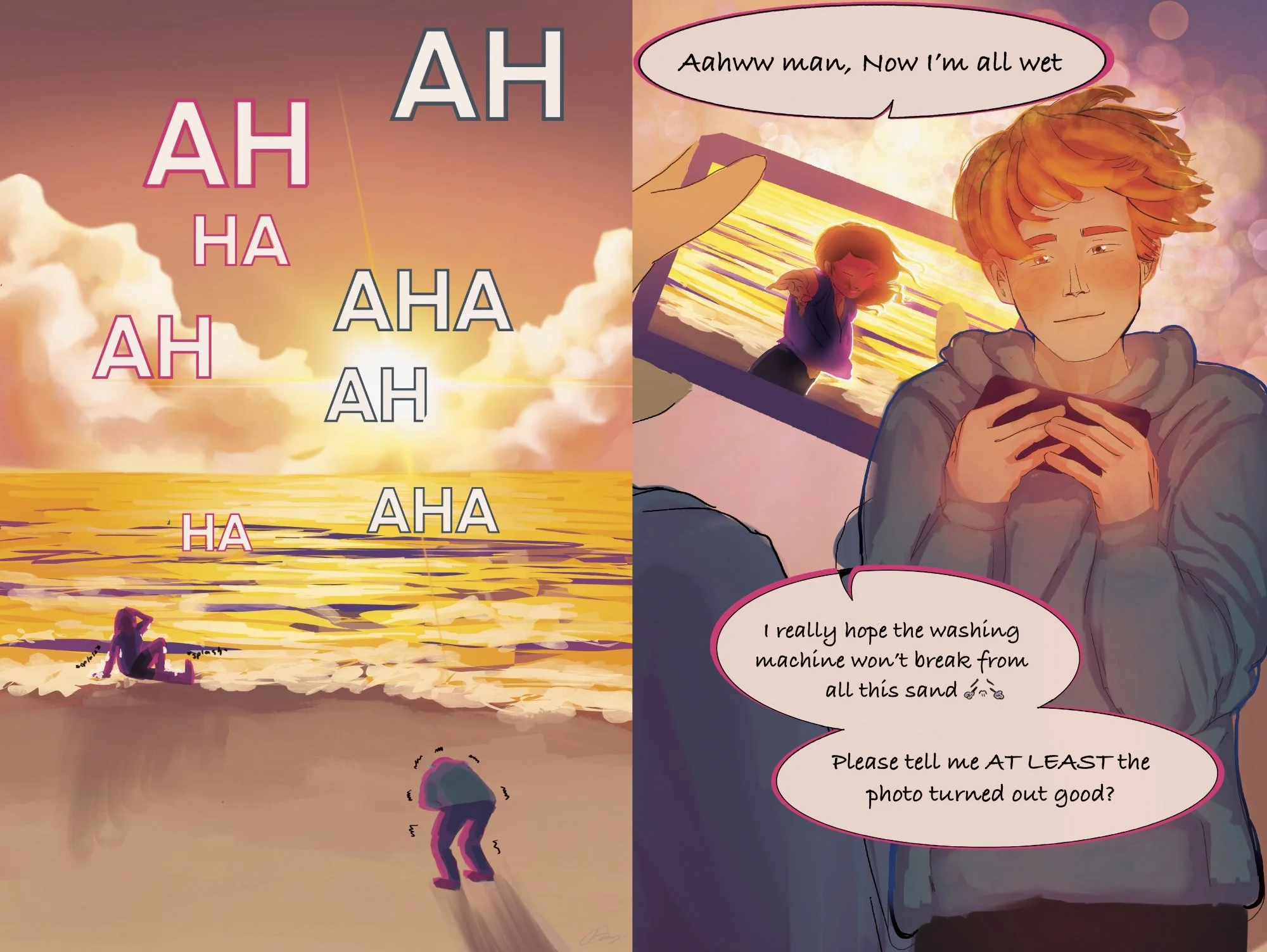 This mini-comic was inspired from the trope idea of accepting that you truly love only this person for who they are. I wanted to express that moment with this short story of two friends hanging out and the guy who took the picture falling in love at the end.