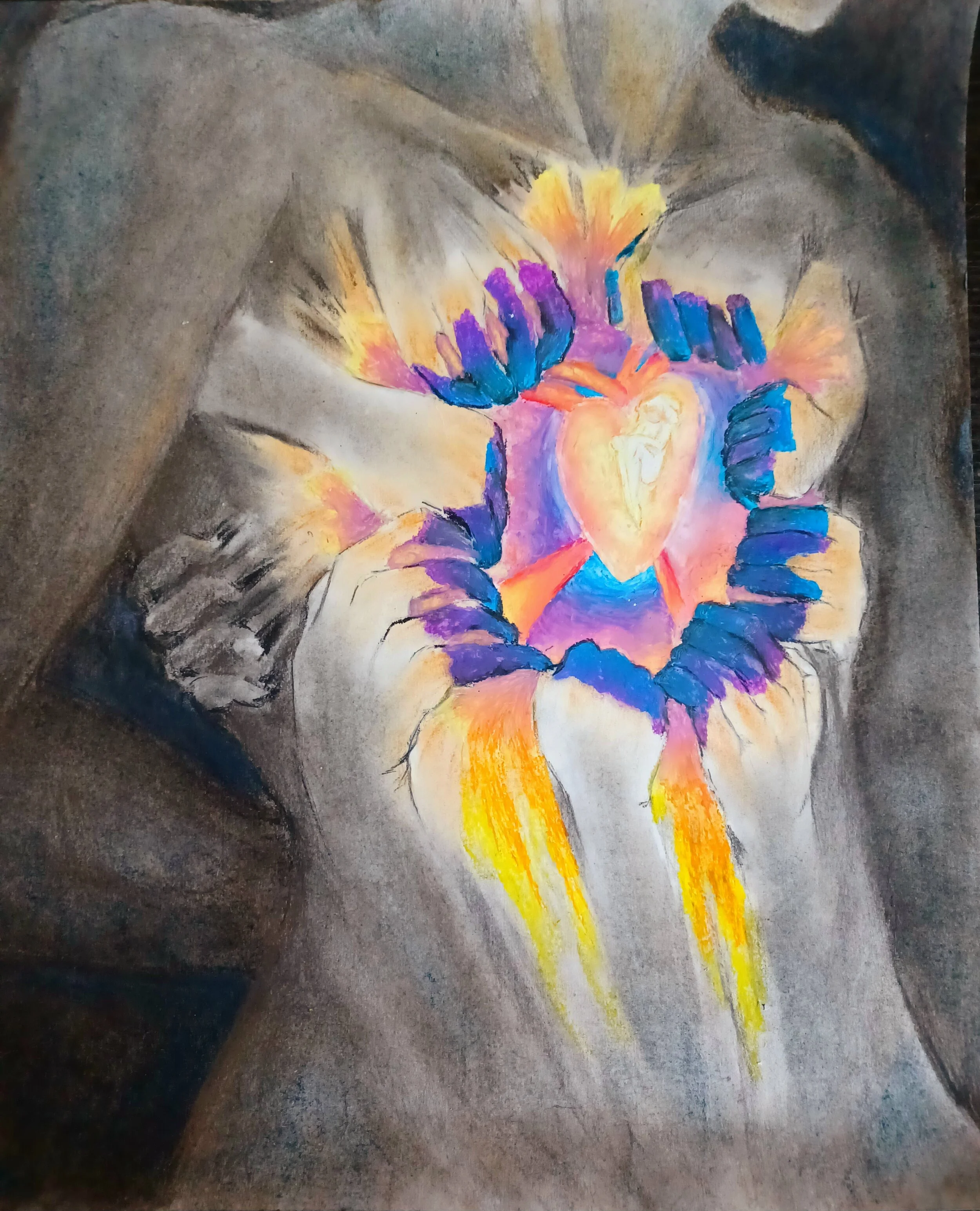 Chalk, charcoal, oil pastels on paper