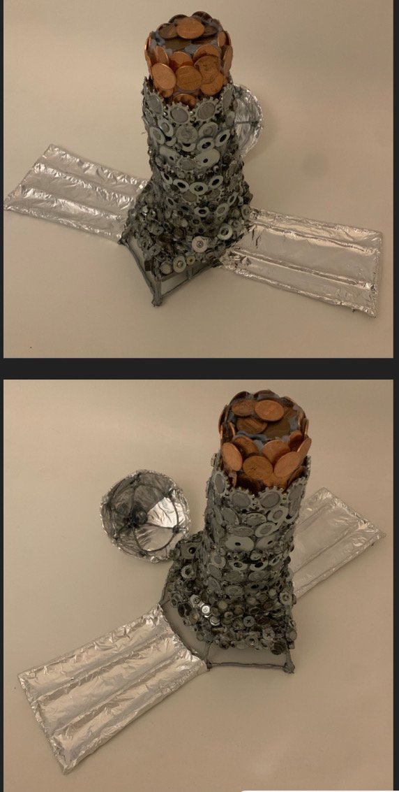 My intention with this artwork was to recreate the first spacecraft that took pictures of the moon which is known as the "Ranger Program" and add my own twist by sculpting it in a funky way. Since the spacecraft was created and launched in the 60's, I decided to give my sculpture more of a rustic cyber feel with the metal pieces I picked such as certain types of flats and bolts.
